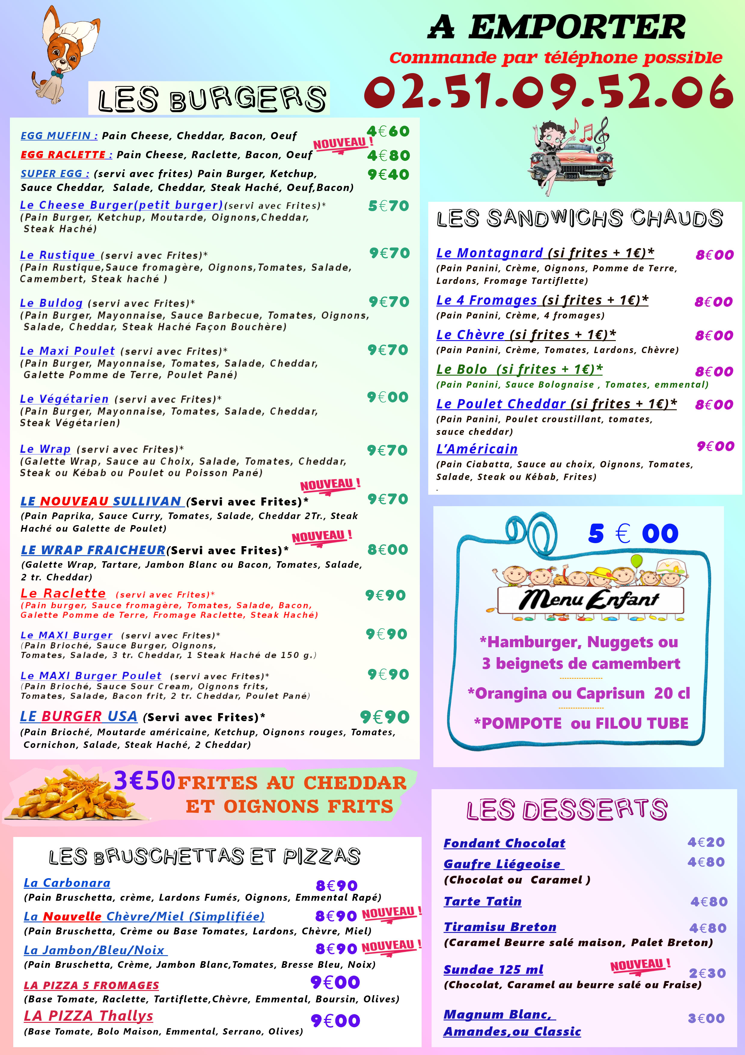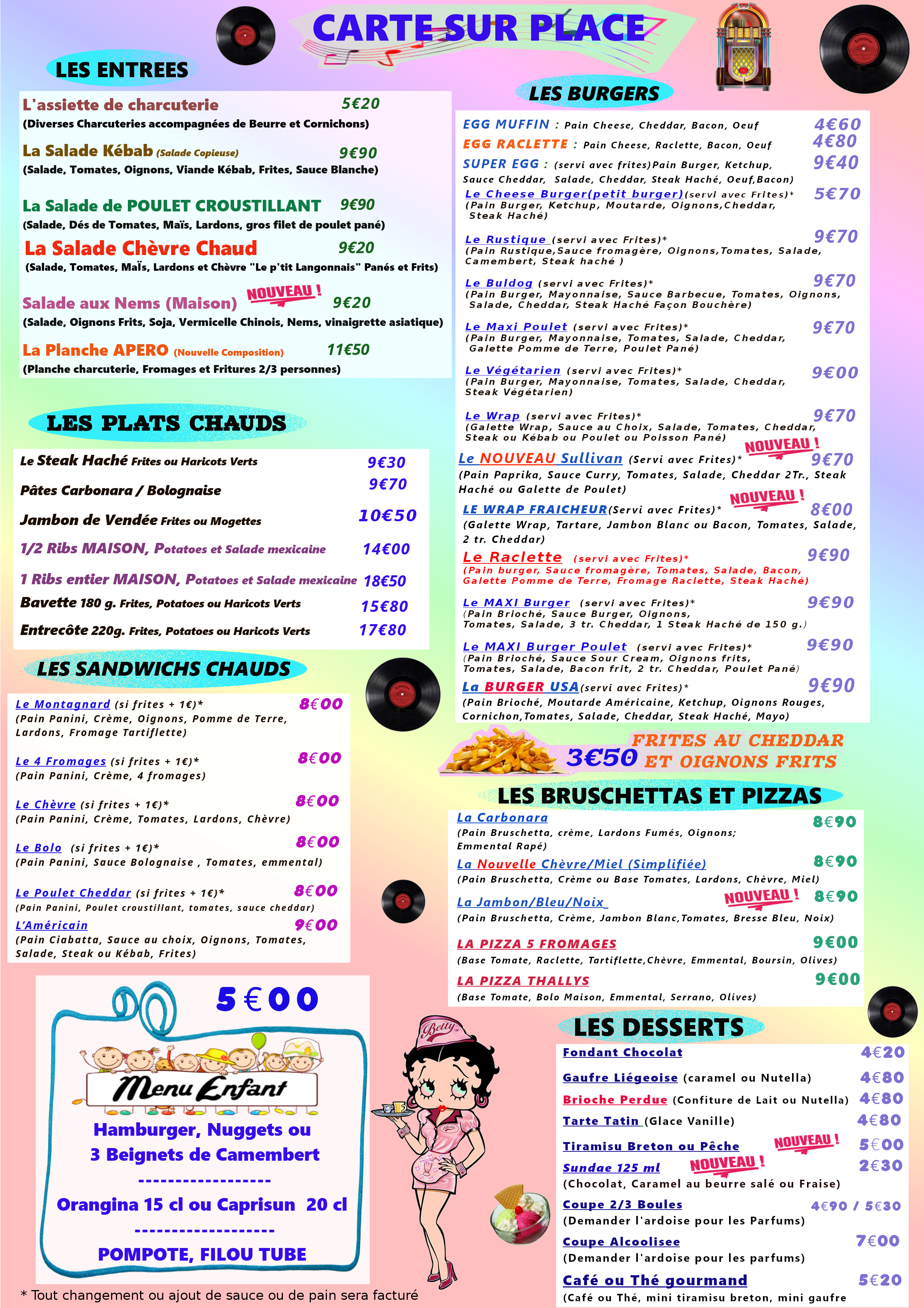 Le Happy Chihuahua est un bar restaurant situé à Sainte Cécile près de Chantonnay, les Essarts en Bocage, Le Puy du Fou, Mouchamps en Vendée. Décoré dans un esprit diner américain, nous proposons une restauration rapide (fast food), tels que des Burgers, Sandwichs chauds, Bruschettas, Salades, Planches apéro, mais également des Entrecôtes, Bavettes, Jambon de Vendée, Pizza... Des menus enfants et des Desserts maison à emporter ou à consommer sur place
